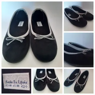 Zapato plano, tela de hilo por fuera, tela ligera por dentro con piel, acabado en punta. Dan talla y son flexibles. Se pueden usar en verano también. Tres dias de uso.