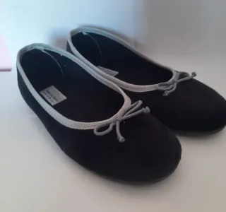 Zapatos de mujer planos tipo bailarina en piel, color beige y negro. Suela de goma flexible. En perfecto estado, sin uso.