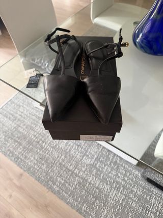 Manoletinas de piel negras de Massimo Dutti, usadas solo un par de veces, estan impecables, pvp 80 euros, recien compradas - Diseño de punta fina. - Tiras finas con cierre de hebilla. - Suela plana.