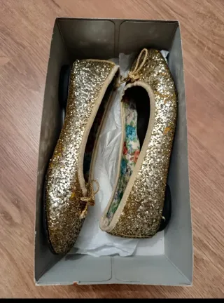 Bailarinas doradaa en perfecto estado, solo una tiene un rozon en el tacon se ve en una foto.