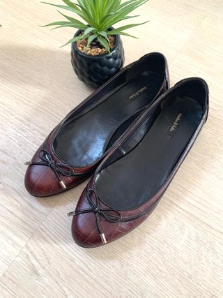 Bailarina/manoletina marrón con detalle de lazo en la puntera. Talla 38. Poco usadas.