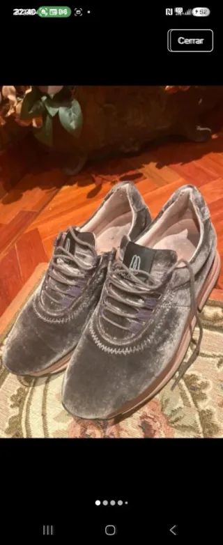 Zapatillas de la marca Pretty Ballerinas en un bonito tono grisáceo ,número 38, muy buen estado - Material exterior de terciopelo. - Cierre con cordones. - Suela de goma en tono rosado.