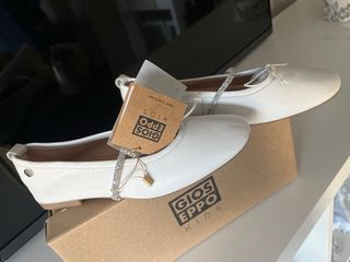 OPORTUNIDAD!!! A estrenar!! Con etiqueta y caja original!! Bailarinas de piel. - Color blanca. - Talla 24 Precio original de tienda 39,99€. Se vende nuevas por la mitad de precio!