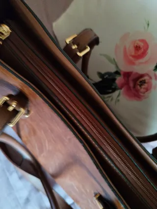 Práctica bolsa de deporte con un neceser a juego, ideal para llevar todo lo necesario. - Diseño con flores. - Correas estampadas con puntos y flores. - Detalles en ante marrón. También puede utilizarse como bolso