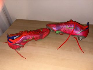 Botas de fútbol Nike Mercurial en llamativos tonos rojos y verdes. - Diseño deportivo. - Cordones rojos. - Suela con tacos.