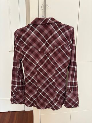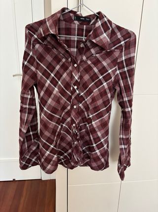 Camisa con un diseño de rayas verticales y horizontales. - Cuello camisero. - Mangas con detalle de lazada. - Tejido ligero.