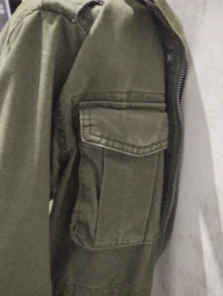 Chaqueta de la marca Superdry en color verde oliva. Presenta un diseño clásico y funcional. - Bolsillo de parche en la manga. - Cierre de cremallera visible.
