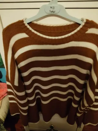 Jersey de punto con un diseño de rayas horizontales. - Manga larga. - Cuello redondo.