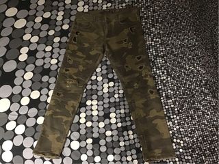 Pantalón estilo skinny con estampado de camuflaje. - Diseño con rotos y detalles acanalados en las rodillas. - Corte ajustado. - Confeccionado en tejido resistente.