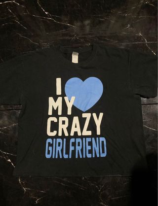 Camiseta negra con diseño I Love My Crazy Girlfriend. - Diseño frontal con corazón azul. - Texto en blanco y azul.