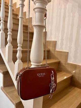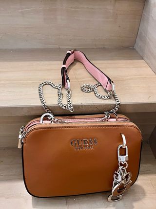 Bolso bandolera de la marca Guess sin usar . - Color marrón. - Cadena dorada. - Incluye charm con logo de Guess. -Medias: 24x16 cms aproximadamente. Lo vendo en su caja original , y con su papel protector de Guess asi como con la bolsita para guardarlo.