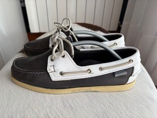 Náuticos Sebago de estilo clásico. - Diseño bicolor en azul y blanco. - Cordones de ajuste. - Suela de goma.