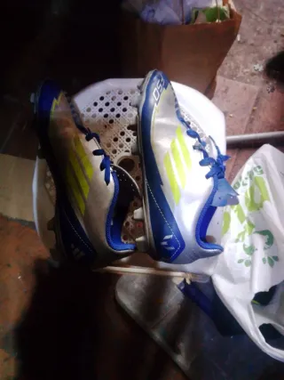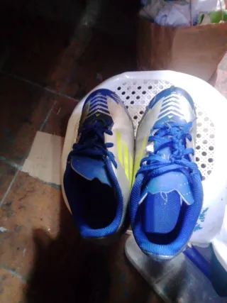 Botas de fútbol para niños. - Diseño en color azul y plateado. - Cierre con cordones.