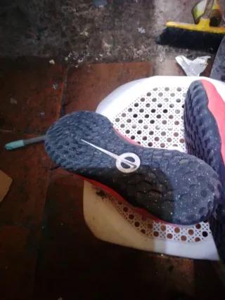 Zapatillas deportivas Asics en color rojo y azul. - Cierre con cordones. - Diseño deportivo. - Tiene un par de puntadas en casa zapatillas, ver fotos. Por lo demás están perfectas. Las vendemos porque se le han quedado pequeñas.