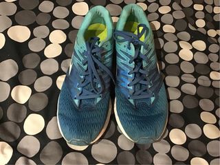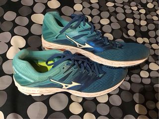 Zapatillas de running Mizuno Wave Shadow 2 en talla 42.5. Diseñadas para ofrecer una experiencia de carrera cómoda y eficiente. - Combinación de colores azul y verde azulado. - Parte superior de malla transpirable. - Sistema de amortiguación Wave. - Suela de goma duradera.