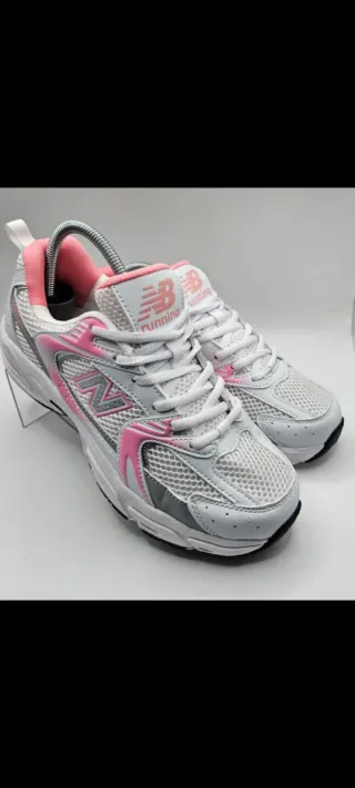 Zapatillas deportivas New Balance en color blanco y rosa, perfectas para running. - Diseño moderno y ligero. - Detalles en color gris. - Cierre con cordones.