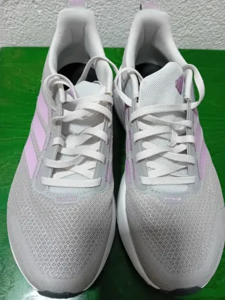 Zapatillas deportivas Adidas en buen estado, listas para usar. - Diseño moderno en gris y blanco. - Cierre con cordones.