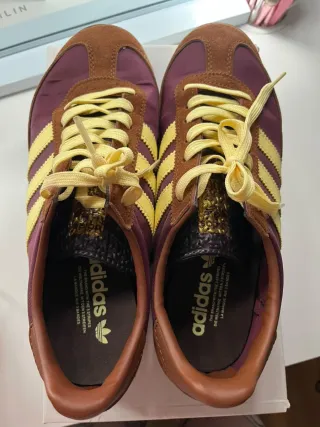 Zapatillas Adidas Country OG edición especial. Zapatillas/Bambas ADIDAS COUNTRY OG SONG FOR THE MUTE BURDEOS Talla 39, me va justa, se corresponde a un 38/38,5 por eso las vendo. ME COSTARON 280€, PRECIO ACTUAL EN TIENDA. A estrenar con las etiquetas y su caja. Muy elegantes. - Diseño único en tonos burdeos y morados. - Materiales texturizados y detalles brillantes. - Logo de Adidas en el lateral.