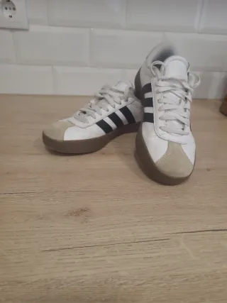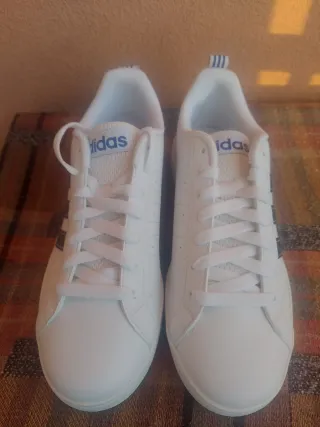 Zapatillas Adidas en color azul y blanco, con suela de goma. - Usadas solo dos veces. - Talla 39.