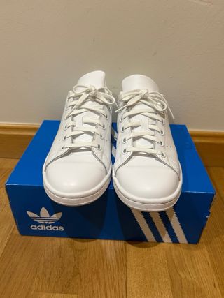 Zapatillas deportivas Adidas. - Diseño clásico en blanco y verde. - Logo de Adidas en la parte trasera.
