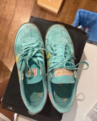 Zapatillas deportivas Adidas en color verde y azul. Usadas 1 vez. Talla normal, tengo muchas bambas y no me las pongo