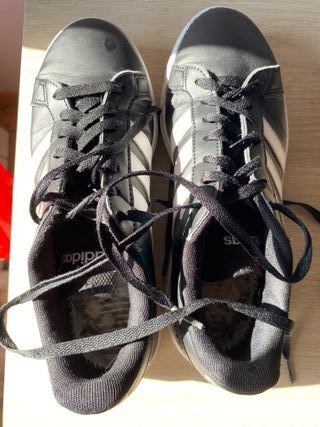 Zapatillas deportivas Adidas de estilo clásico. Utilizadas solo media hora Nuevas valen 110€ - Diseño en color negro con detalles blancos. - Cierre con cordones. - Suela de goma.