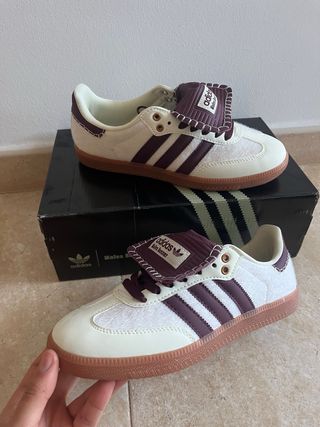 🔥 Adidas Samba blancas y burdeos – clásicas / streetwear 🔥 Vendo bambas Adidas Samba en color blanco con franjas burdeos. Uno de los modelos más icónicos de Adidas, muy de moda y perfectas para un look retro o streetwear 👟✨ ✔️ Modelo Samba muy buscado ✔️ Diseño clásico y atemporal ✔️ Muy cómodas para el día a día ✔️ Sin estrenar (ver fotos) Ideales para amantes de las sneakers, estilo vintage, retro o streetwear 😎 💬 Si tienes alguna duda, podemos negociar precio, escríbeme sin problema