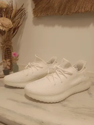 Zapatillas bambas deportivas Adidas Yeezy Boost v2 de color blanco. Perfectas para el día a día. Nuevas a estrenar aún conservan su etiqueta . Talla 44,5 - Diseño moderno y cómodo. - Suela de goma. - Cierre con cordones.