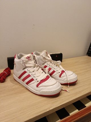 Bambas altas Adidas, talla 37,5, niñas, blanco y rosa 2 juegos de cordones, impecables!! ningún rasguño ni desgaste!!