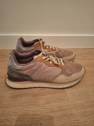 Zapatillas deportivas con un diseño clásico y llamativo. - Combinación de colores verde y blanco. - Cordones blancos. - Suela blanca, pone un 40 pero es para un 38-38'5 Muy poco uso, pantalon poco uso.