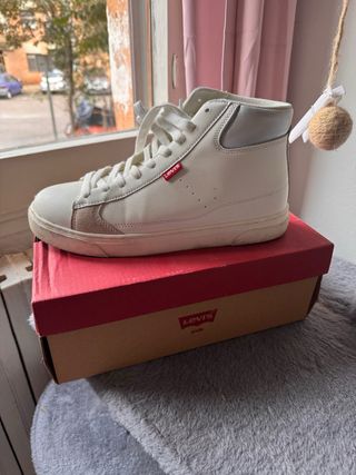 Zapatillas altas de la marca Levi's. - Color blanco con detalles en beige. - Cierre con cordones.