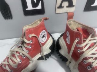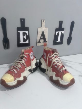 Zapatillas altas de la marca Converse en color rojo y blanco. Un diseño llamativo y moderno. - Cierre con cordones. - Suela gruesa y dentada. - Detalle de logo en el lateral.
