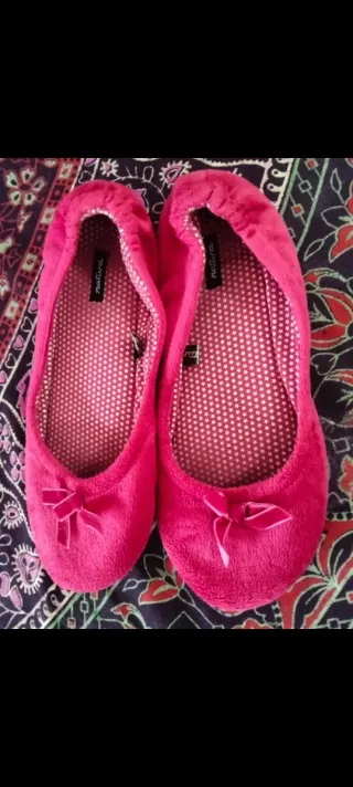 Comodísimas zapatillas de estar por casa. Pantuflas número 39 Marca Natura - Diseño tipo bailarina. - Detalle de lazo en la puntera. - Interior estampado de topitos. Ropa mujer chica pijama calzado zapatos zapatillas bambas