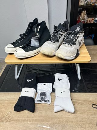 👟 2 pares de Zapatillas Nike 44,5 y Converse 45 (Estas valieron 130 y no tienen NI UN solo uso!! En buen estado y están listas para usar! 👟Tengo mas pares por el mismo precio en mi perfl! 🎧 Regalo 1 auricular valorado en 19€ en el Ale-Hop, se escuchan de 10. El precio es bajo porque quiero venderlo ya!!! . Tengo mas pares de bambas a este precio en mi perfil! ‼️⚠️ Vendo auriculares valorados en 19€ a 5€ cada uno, cualquier duda no dudes en contactar!⚠️‼️ Accesorios a parte menos los auriculares que van incuidos! Pero lo demás a mitad de precio del mercado🙏