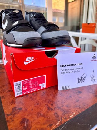 -Talla: 39. -Colores: negro y blanco. -Material: goma, malla y cuero sintético. -Marca y calidad: Nike, de excelente. -Estado: bueno, con signos de uso, especialmente en la zapatilla derecha. -Envío: seguro, rápido y bien protegido siempre. -Entrega en mano: disponible en Barcelona y zona metropolitana. Si necesita más información sobre las zapatillas o cualquier otro producto, contacte conmigo y le intentaré responder lo antes posible.
