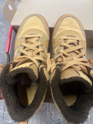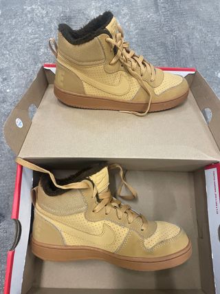 Puestas en 2 ocasiones. Observar las fotos. No rebajo. Zapatillas altas Nike en tonos beige y marrón, con un forro interior de pelo para mayor calidez.