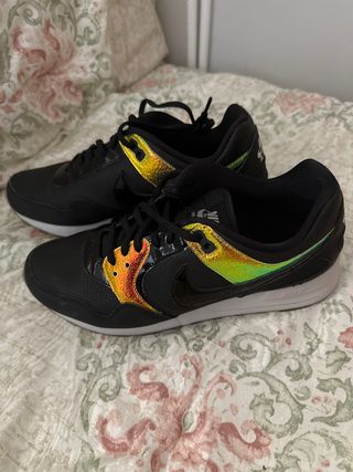 Bambas Nike Air Pegasus Apenas me las he puesto, ya que me van justas😅 Son chulísimas. Son negras e irisadas (la parte irisada cambia de color según le da la luz).