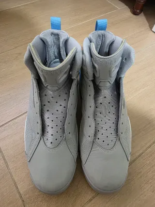 Zapatillas Nike Air Jordan MVP en tonos grises con detalles azules y blancos. Los cordones originales estan dentro de las bambas. Cómo nuevas. Se usaron una vez. Nuevas cuestan 169,99 euros. - Diseño de caña alta. - Perforaciones en la parte superior para ventilación. - Lengüeta con logo. - Tirador trasero para facilitar el calce.