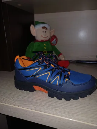 Zapatillas de montaña para niño en color azul y naranja. - Diseño deportivo. - Cierre con cordones. - Suela de goma antideslizante.