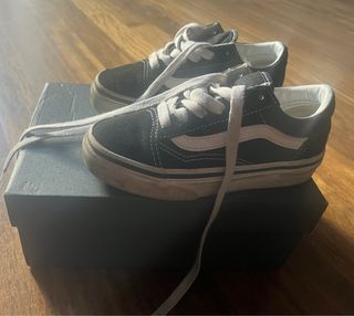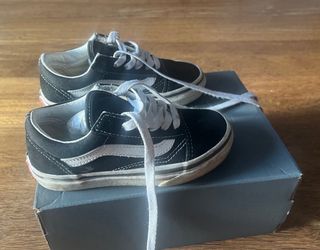 Zapatillas Vans clásicas en color negro con detalles blancos. - Talla: 28