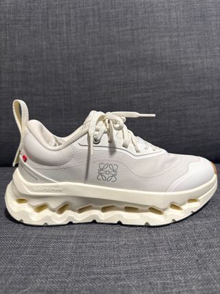 Zapatillas deportivas On Running modelo Cloud, colaboración con Loewe. Totalmente originales no vendo nada que no lo sea. No tienen caja por eso su precio. Bambas espectaculares en tienda mas del doble de su precio. - Color beige y blanco. - Talla 36.5.