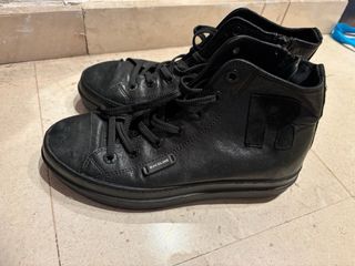 Zapatillas altas de color negro. - Cierre con cordones. - Detalle de cremallera lateral. - Pequeño detalle metálico en la parte trasera.