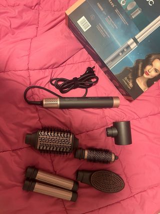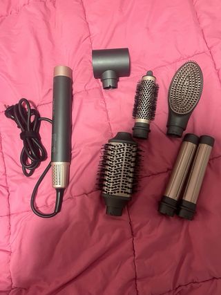Set de peinado Cecotec Bamba CeramicCare Airglam 6 en 1. Incluye varios accesorios para diferentes estilos. - Cepillo redondo. - Cepillo alisador. - Concentrador. - Rizador (2 unidades). - Cepillo de secado. Tambien se vende con estuche y caja. Usada 2 o 3 veces. La vendo porque me han regalado otro estilizador igual.