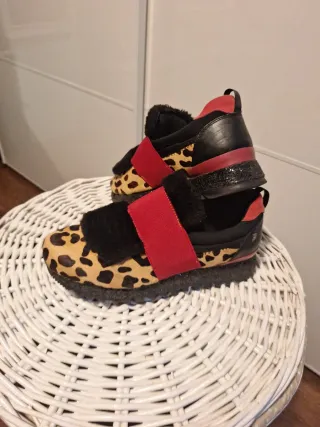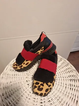 Zapatillas Gioseppo con un diseño animal print muy llamativo. - Combinación de negro, rojo y estampado de leopardo. - Detalle de pelo sintético en la parte delantera. - Suela con textura.