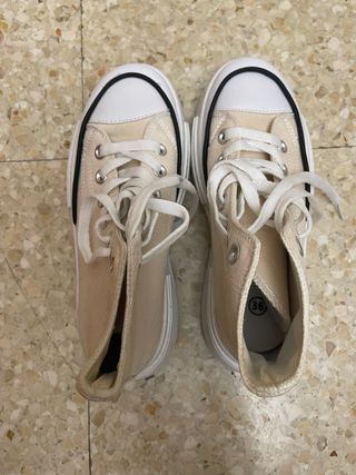 Zapatillas de ante color beige. - Cierre con cordones. - Suela de goma blanca.