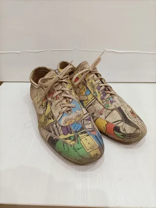 Zapatillas de piel con un diseño único inspirado en cómics. Son cómodas y originales n.39 V - Estampado multicolor de viñetas. - Cierre con cordones.