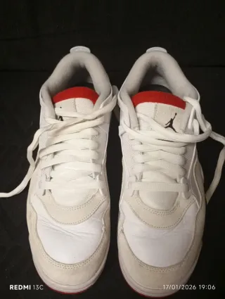 Zapatillas deportivas Jordan. - Color blanco, rojo y negro. - Talla 43. La talla es justa, mas bien un 42.