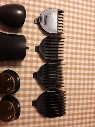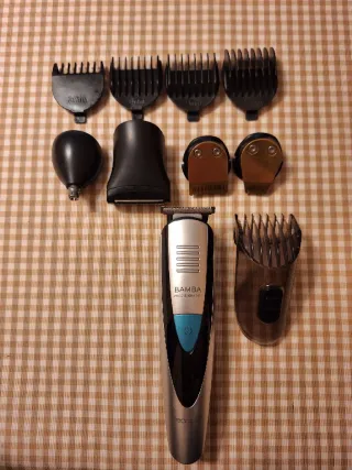 Máquina de cortar pelo y afeitar Bamba Precision Care. Incluye varios accesorios para diferentes estilos. - Incluye 5 peines guía de diferentes tamaños (3, 6, 9 y 12mm y uno extensible de hasta 16mm) - Incluye 3 cabezales de corte. - Incluye un accesorio para nariz y orejas. - Incluye una maquinilla para afeitar - Incluye un cepillo de limpieza.