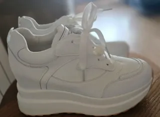 Zapatillas deportivas blancas con un diseño moderno y cómodo. - Tacón interior de 8 cm para un extra de altura. - Cierre con cordones para un ajuste perfecto. - Suela de goma para mayor adherencia.
