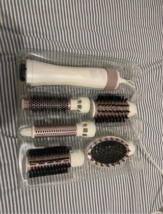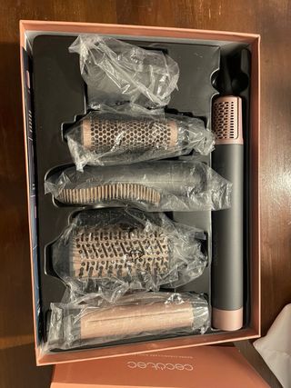 Cepillo secador y moldeador de aire caliente. - Diseño ergonómico para un fácil manejo. - Cerdas diseñadas para desenredar y dar forma. - Revestimiento protector para el cabello. - Sin estrenar. Precio Amazon 32,90.